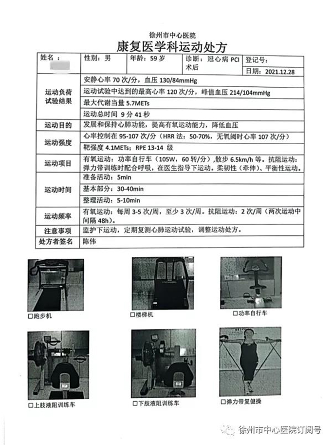 在經(jīng)過心肺運動試驗的監(jiān)測后,陳先生得到專屬于他的運動監(jiān)測報告。徐州市中心醫(yī)院心肺康復(fù)部的專業(yè)醫(yī)生在運動上根據(jù)陳先生的實際情況和他平時愛運動的項目結(jié)合在一起制定專屬于他的運動處方,同時還給予了營養(yǎng)上的居家指導(dǎo),除此之外還與陳先生保持及時交流溝通,保證運動的高效和安全。