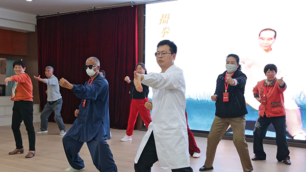 推拿科陳世龍醫(yī)師帶領(lǐng)大家練習(xí)了八段錦,這套養(yǎng)生功法將機體運動與呼吸方式相結(jié)合,既能舒筋活絡(luò)又能強身健體,更是延年益壽的秘訣,很適合老年人日常練習(xí)。老同志們凝神靜氣,悉心學(xué)習(xí),跟隨陳醫(yī)師的指引,一同體驗八段錦的神奇魅力,現(xiàn)場和諧氛圍宛如畫卷。