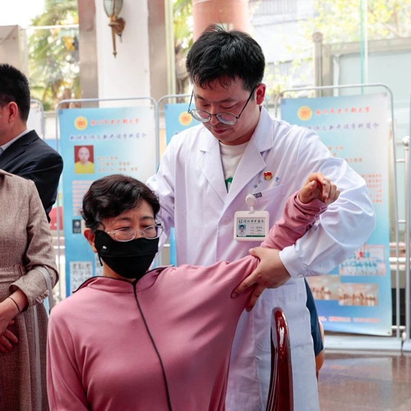 陳世龍醫(yī)師在現(xiàn)場為大家提供推拿義診體驗