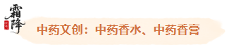 霜降時(shí)節(jié)氣候干燥,不僅需內(nèi)服溫潤(rùn)食材,外用養(yǎng)護(hù)也至關(guān)重要。中藥香水與香膏以芳香中藥材為核心,借“聞香養(yǎng)生”與“潤(rùn)膚護(hù)表”雙重作用,既能舒緩秋冬干燥引起的皮膚不適,又能通過(guò)藥香理氣安神,契合霜降“內(nèi)外同調(diào)”的養(yǎng)生理念。