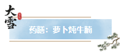 藥膳方面:牛腩性溫味甘,歸脾、胃經(jīng),核心功效為溫補(bǔ)氣血、強(qiáng)筋健骨,能有效抵御大雪時(shí)節(jié)的寒邪侵襲,改善畏寒乏力、氣血不足等問題;白蘿卜性涼味甘、辛,可順氣消食、潤(rùn)肺生津,既能中和牛腩的溫?zé)嶂,避免滋補(bǔ)過度引發(fā)燥熱,又能緩解冬日脾胃功能減弱導(dǎo)致的積食腹脹,二者形成“溫補(bǔ)+清潤(rùn)”的黃金搭配。
