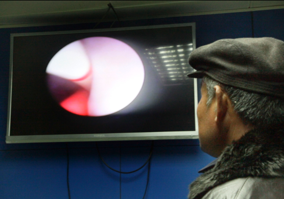 手術(shù)室內(nèi)市一院泌尿外科劉星主任正在幫一位患者做尿道狹窄擴(kuò)張手術(shù),手術(shù)室外一位老人正目不轉(zhuǎn)睛地盯著視頻顯示屏。通過和老人攀談了解到,正在接受手術(shù)的是老人的兒子,今年35歲的趙先生,來自安徽蕭縣劉套鎮(zhèn)趙樓村,9年前曾經(jīng)慕名找到泌尿外科劉星主任,為其破損尿道結(jié)石手術(shù),術(shù)后效果好,無痛苦未復(fù)發(fā)。