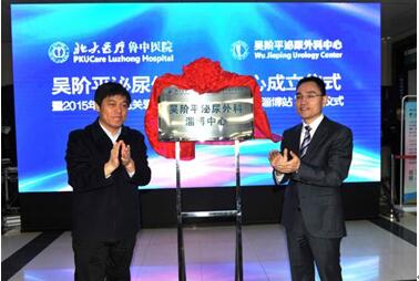 臨淄區(qū)委書記宋振波(左)與北大醫(yī)療產(chǎn)業(yè)集團CEO呂和東為吳階平泌尿外科淄博中心的成立揭開序幕