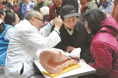 3月1日,全國愛耳日前夕,江蘇省人民醫(yī)院耳鼻咽喉科專家醫(yī)生,在院門診大廳宣傳用耳醫(yī)療保健知識,并現(xiàn)場為市民免費義診。 新華報業(yè)視覺中心記者 樂 濤 實習(xí)生 張君妍攝