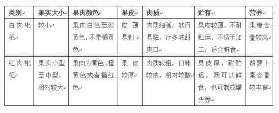 枇杷有兩種,一種是紅肉枇杷,一種是白肉枇杷,好比肉類中的紅肉與白肉之分。