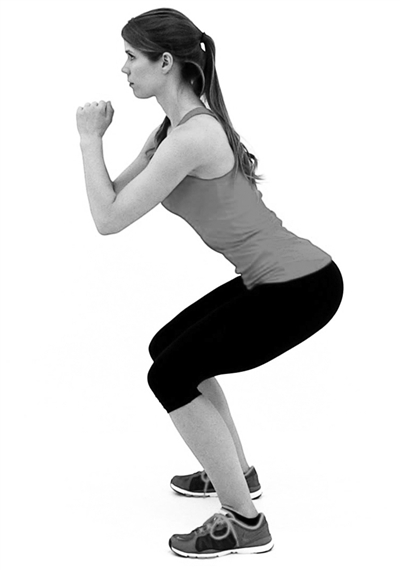 鍛煉方法:原地深蹲是一項全能的運動,尤其對下肢、臀部有很好的鍛煉效果,還能夠增強心肺功能、塑造腿部曲線。深蹲時要注意:挺胸收腹、腰部平直、不要向前弓,深蹲至最低時,盡量達到大腿和地面水平(如圖2),腳跟勿離地,可以一組做20~30個,重復2~3組!