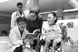 四年來,黃偉主任等醫(yī)護人員早已和周明珠情同兄妹,關(guān)心周明珠的健康狀況,定時定期上門為她進行健康體檢。同時支持周明珠追求自己熱愛的事業(yè),一步一步成為了中國最美志愿者!妒赝孥E》新書從命懸一線、驚心動魄的搶救故事講起,描述周明珠在這四年重生之路中的點點滴滴,書中許多故事都是圍繞她與無錫三院醫(yī)護人員并肩和病魔斗爭的故事,所以新書剛剛打印出樣刊,周明珠就第一時間送給可愛的醫(yī)護人員。(丁一 朱鯨潤)