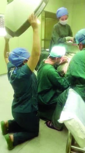 昨天上午,一名女患者因車禍?zhǔn)苤貍凰偷结t(yī)院,手術(shù)中要進(jìn)行顳底部止血,需要水平位置的光線照射,護(hù)士才跪地托舉無影燈。醫(yī)師龔景海在隔壁完成另外一臺手術(shù),來查看這臺手術(shù)進(jìn)展時,隨手將王國芬跪地場景拍下來,發(fā)到醫(yī)院內(nèi)部群中,被員工發(fā)到朋友圈。王國芬說,“當(dāng)時需要使用特定角度的燈光,醫(yī)生說燈光壓低,我就下意識地跪到地上。我們就是埋頭苦干的人,沒想到能當(dāng)網(wǎng)紅。”(蔣敏 臧曉松)