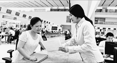 日前,江蘇淮安市人社局醫(yī)保中心工作人員(右)在服務(wù)窗口接受咨詢。