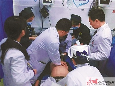 送患者來的人表示,患者突然暈倒,并發(fā)生抽搐。“面色青紫、無呼吸、無心跳……”急救中心的醫(yī)護人員對患者快速評估后,立即跪在推床上對該患者進行心臟按壓。就這樣,盡管急救中心大門距離急診室不到10米的距離,但由于猝死的黃金搶救時間只有短短的4分鐘,為了贏取寶貴的搶救時間,醫(yī)生跪在推床上邊給患者做胸外心臟按壓邊將患者轉運到急診室內(nèi)。