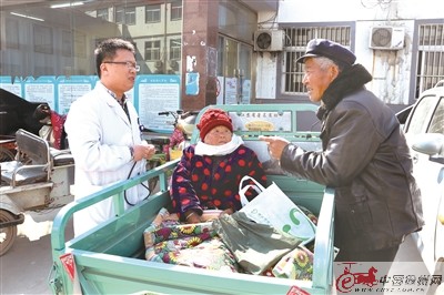 在豐縣趙莊鎮(zhèn)衛(wèi)生院,李振勇醫(yī)生義務(wù)接診約40人左右。上圖前來(lái)復(fù)診的老病號(hào),李振勇交待她一定要遵醫(yī)囑按時(shí)吃藥、有情況隨時(shí)聯(lián)系。 孫海芹 攝