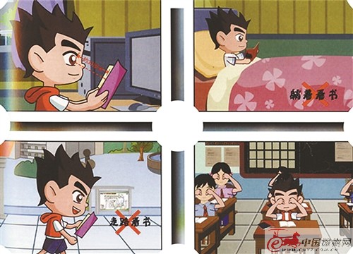 讀書寫字姿勢要端正,眼與書本距離不小于30厘米;連續(xù)讀寫或者看電視、使用電腦一小時要休息片刻,休息時盡可能向遠(yuǎn)處眺望;不在光線太強(qiáng)或太暗的環(huán)境中看書,不躺在床上看書,不邊走路邊看書,不在行進(jìn)的車廂里看書。