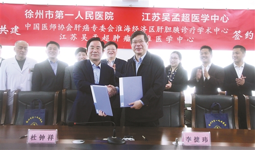 今年3月24日,江蘇吳孟超醫(yī)學(xué)中心負(fù)責(zé)人再次來到徐州,在徐州市第一人民醫(yī)院參加了雙方合作共建“中國醫(yī)師協(xié)會肝癌專委會淮海經(jīng)濟區(qū)肝膽胰診療學(xué)術(shù)中心”和“江蘇吳孟超腫瘤精準(zhǔn)醫(yī)學(xué)中心”的簽約儀式。