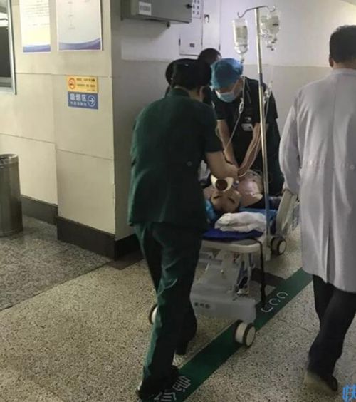 轉(zhuǎn)往導(dǎo)管室的路上,一位護(hù)士跪在轉(zhuǎn)運(yùn)床上不停地做心臟按壓。另外幾個(gè)人推著轉(zhuǎn)運(yùn)床奔跑,終于在5分鐘內(nèi)將病人送入導(dǎo)管室。
