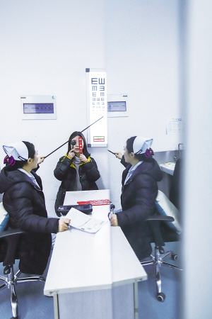 在眼科體檢室外,記者看到每名考生進(jìn)入之前,都有醫(yī)生詢問(wèn)是否佩戴隱形眼鏡,并檢查眼睛。該醫(yī)生表示,現(xiàn)在的學(xué)生,十個(gè)有七八個(gè)都是近視眼。有些學(xué)生以為戴隱形眼鏡能夠躲避過(guò)去,這樣的想法是行不通的。因?yàn)樵谶M(jìn)入視力體檢室之前,都要先對(duì)學(xué)生的眼底進(jìn)行基本檢查。“現(xiàn)在每天都能檢查出幾名學(xué)生佩戴隱形眼鏡。”
