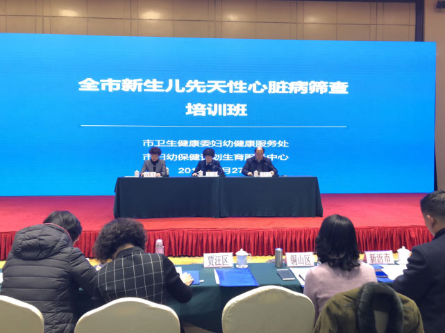 培訓班上,徐州市兒童醫(yī)院心胸外科崔傳玉主任,徐醫(yī)科大附院徐艷主任和徐州市婦計中心褚英主任分別就新生兒先天性心臟病篩查技術規(guī)范,新生兒先天性心臟病篩查心臟聽診技術和徐州市新生兒先心病篩查項目實施方案進行逐一講解,并就經皮脈氧儀的操作進行了現場示范。整個培訓現場洋溢著濃厚的學術氛圍,有力的推動了全市新生兒先天性心臟病篩查的業(yè)務的開展。