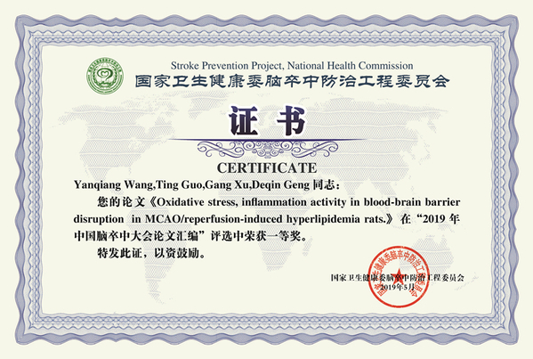 為展示全國的腦卒中防治工作成果,腦防委評選出具有代表性的2019年中國腦卒中防治百篇優(yōu)秀論文,神經(jīng)內(nèi)科耿德勤教授獲得2019年中國腦卒中大會論文匯編一等獎、2019年中國腦卒中防治優(yōu)秀百篇論文司南二等獎,展現(xiàn)了徐醫(yī)附院卒中中心建設近年研究成果。