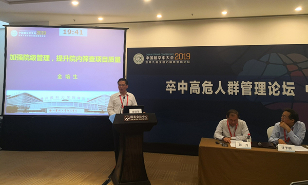 2019腦卒中大會設置了“卒中高危人群管理論壇”,旨在選擇2018年度腦卒中高危人群篩查項目實施較好的醫(yī)院交流經(jīng)驗。5月17日上午10:30,常務副院長金培生教授代表徐醫(yī)附院向全國推廣了該院2018年度腦卒中高危人群篩查項目工作經(jīng)驗,從卒中中心現(xiàn)狀、規(guī)范開展建檔與隨訪、開展中期質(zhì)控、持續(xù)改進措施、改進成效等多個方面進行了詳細解讀。全國近200家基地醫(yī)院代表認真聆聽了金院長授課,通過直播、拍照、錄像的形式向徐醫(yī)附院借鑒優(yōu)秀的工作模式。