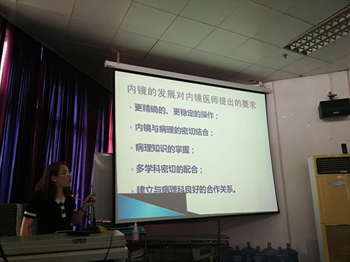 沙龍邀請(qǐng)了國內(nèi)消化道早癌知名名學(xué)者上海同濟(jì)大學(xué)附屬東方醫(yī)院內(nèi)鏡中心徐勤偉副主任醫(yī)師、聊城人民醫(yī)院消化科石莎副主任醫(yī)師,分別就內(nèi)鏡領(lǐng)域《如何提高早期胃癌發(fā)現(xiàn)率》及《從內(nèi)鏡醫(yī)師角度談病理》做了專題報(bào)告;同時(shí)徐州市第一人民醫(yī)院病理科高立勇主任對(duì)泌酸性腺瘤(胃底腺型胃癌)的病例進(jìn)行了深入介紹,該科陳光俠主任對(duì)UEGW2018(歐洲胃腸疾病周2018)關(guān)于HP方面的精彩視頻進(jìn)行了展示與解析。本次學(xué)術(shù)沙龍小而精,來自徐州市內(nèi)消化領(lǐng)域近80位醫(yī)生與護(hù)士參加了本次活動(dòng)。