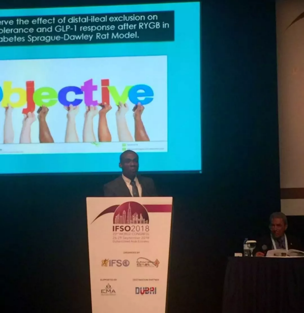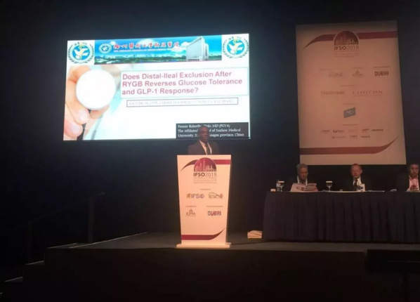 2018年伯尼受邀參會第23屆國際肥胖與代謝病外科聯(lián)盟世界大會(IFSO)并做題目《The Effects of Distal-ileal Exclusion After Roux-en-Y Gastric Bypass on Glucose Tolerance and GLP-1 Response in Type-2 Diabetes Sprague-Dawley Rat Model 》的大會發(fā)言,介紹徐醫(yī)附院減重代謝外科中心的最新研究成果。該會議為世界最高級別代謝減重會議,來自全球80多個國家的兩千余名代表共同參加。