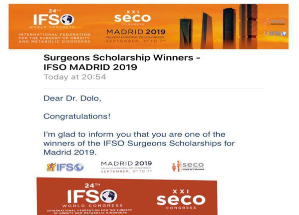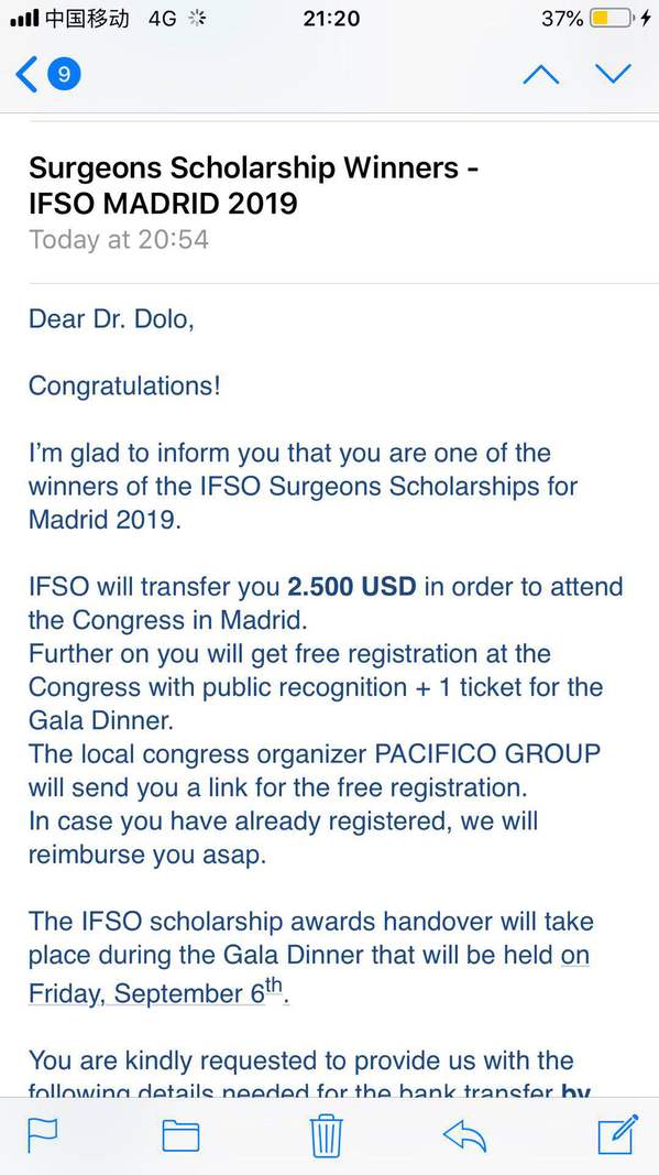 熱烈祝賀徐醫(yī)附院減重代謝中心伯尼博士獲得IFSO 2019獎學(xué)金