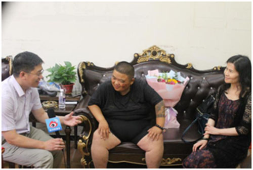 黃淮網(wǎng) 2019年7月11日上午,曾被冠以“淮海首胖”的蔡先生站在工作的物流公司門口,較一年前明顯清瘦了許多,也精神了許多,臉上洋溢著開朗自信的笑容。看到徐州醫(yī)科大學(xué)附屬醫(yī)院代謝減重外科中心朱孝成主任一行隨訪人員后,一路快步迎過來與一一握手寒暄。
