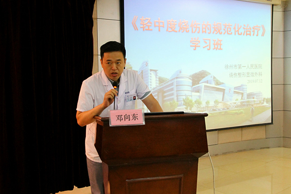 黃淮網(wǎng) 7月12日上午,徐州市第一人民醫(yī)院燒傷整形科在院E樓六樓會議室主辦“輕中度燒傷的規(guī)范化治療學習班”。據(jù)了解,該學習班是一個市級繼續(xù)醫(yī)學教育項目,面對全市燒傷整形領域開放,徐州市第一人民醫(yī)院科教處副處長張穎代表醫(yī)院致辭。