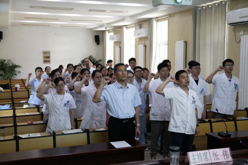 儀式最后,朱相華副院長帶領(lǐng)大家作入職宣誓。鏗鏘有力的中國醫(yī)師誓言在會議室內(nèi)回蕩,也拉開了2019年新入職職工崗前培訓的序幕。