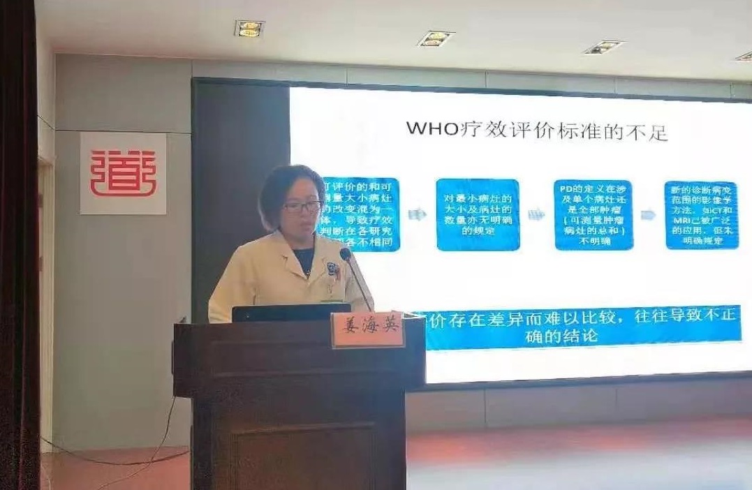 在下午的課程中,培訓班邀請了腫瘤內(nèi)一科姜海英主任分享了化療的效果評價相關(guān)經(jīng)驗。