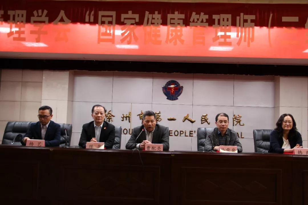 培訓(xùn)會(huì)上,徐州市衛(wèi)生健康委健康促進(jìn)處、市愛(ài)衛(wèi)辦曹配亮主任代表市衛(wèi)健委就學(xué)以致用,充分認(rèn)識(shí)健康管理師在健康促進(jìn)工作中的重要意義作了致辭,F(xiàn)場(chǎng)領(lǐng)導(dǎo)為徐州市健康管理學(xué)會(huì)首批"國(guó)家健康管理師(三級(jí))"培訓(xùn)教師頒發(fā)聘書(shū)。正式聘請(qǐng)徐州市第一人民醫(yī)院龐秋紅主任、徐州市腫瘤醫(yī)院臧二梅主任、徐州市腫瘤醫(yī)院高麗萍主任、徐州市中心醫(yī)院魯慧主任以及徐州市傳染病醫(yī)院焦向鯤主任為首批徐州市健康管理學(xué)會(huì)國(guó)家健康管理師(三級(jí))講師。