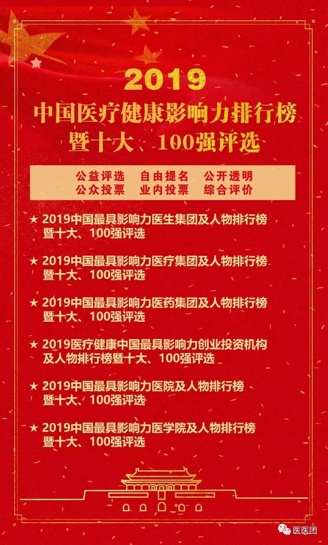 2019中國醫(yī)療健康影響力排行榜暨十大、100強(qiáng)評選