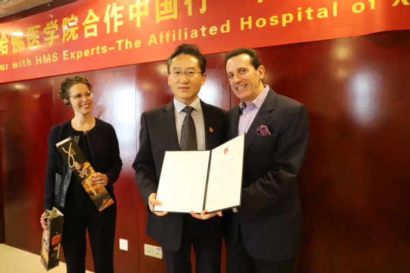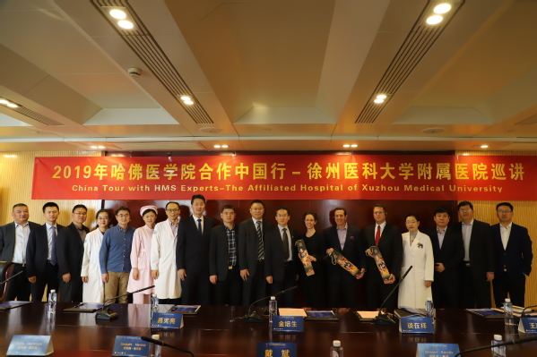 在巡講活動開始前,徐醫(yī)附院領(lǐng)導(dǎo)與哈佛醫(yī)學(xué)院三位教授進(jìn)行了座談。常務(wù)副院長金培生代表醫(yī)院對來賓表示歡迎,并向他們簡單介紹了醫(yī)院基本情況。三位外賓也簡要介紹了各自單位的基本情況。座談結(jié)束后,雙方互贈禮物以示友好。