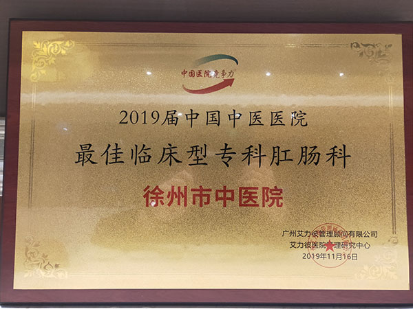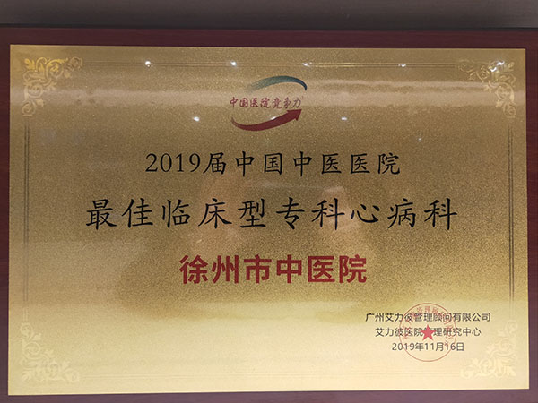 2019年11月16日,中國醫(yī)院協(xié)會中醫(yī)醫(yī)院分會第五屆年會成功召開。艾力彼醫(yī)院管理研究中心在會上發(fā)布了“2019中國中醫(yī)醫(yī)院最佳?” 評選結(jié)果。徐州市中醫(yī)院心血管科(心病科)、針灸科、肛腸科三個專科入選“2019中國中醫(yī)醫(yī)院.最佳臨床型?”,為全國地級市中醫(yī)院入選最佳臨床型?谱疃嗟尼t(yī)院。