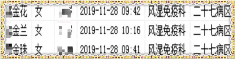 11月28日風濕免疫科病房迎來了新景象,一個家族成員,來了同胞三姐妹,分別是“金花”、“金蘭”、“金珠”,非常好聽的名字,“金”是“富貴”,“花”是“漂亮”,“蘭”是“健康”,“珠”是美好的事物聚集在一起,代表“吉祥如意”。一天下來,一共收了九個新患者,他們都是奔著對風濕免疫科的信任而來。“九”這個數(shù)字,起初是龍形圖騰文化的文字,繼而演化代表“神圣與吉祥”。