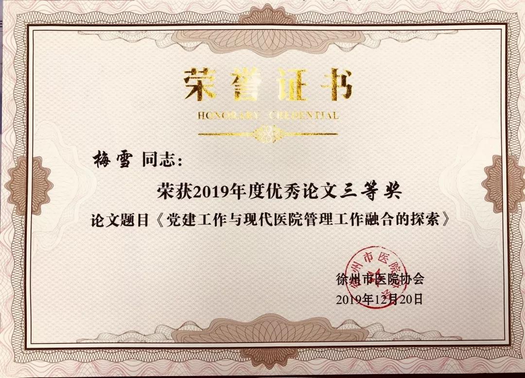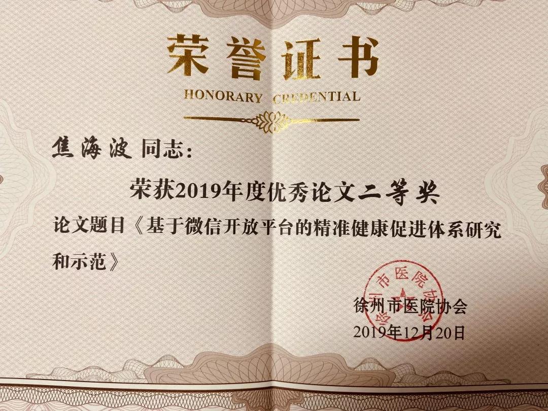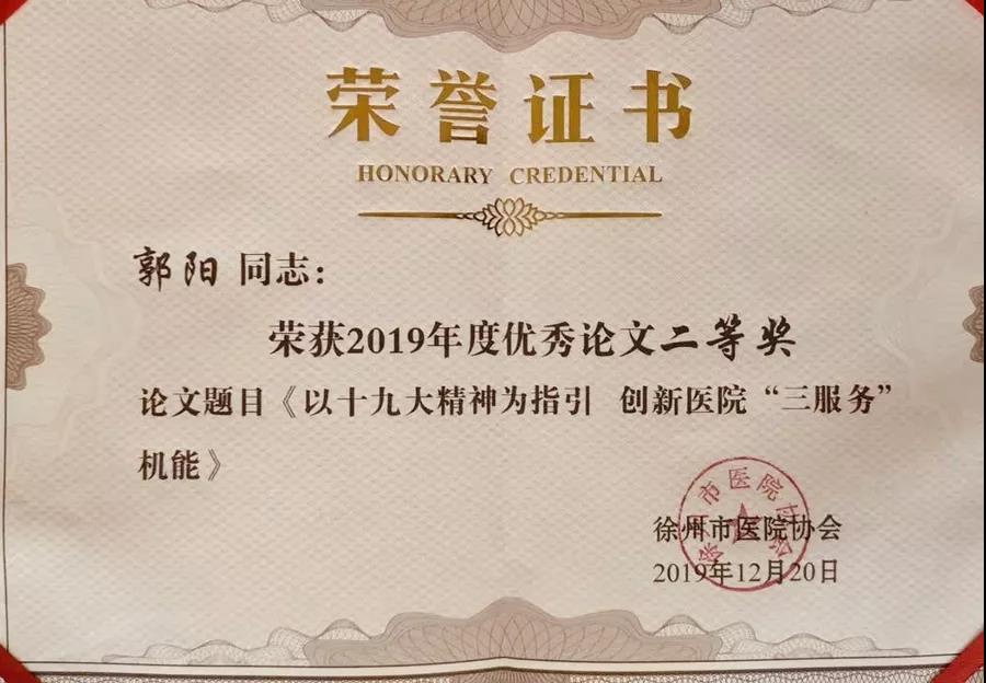 徐州市一院焦海波、梅雪、郭陽撰寫論文獲徐州市醫(yī)院協(xié)會2019年度優(yōu)秀論文表彰