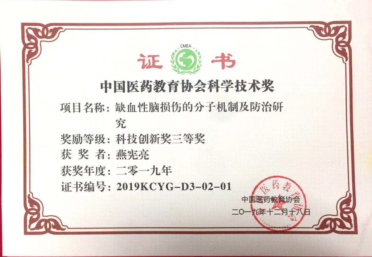 2019年12月21日,中國醫(yī)藥教育大會在北京召開,大會公布了中國醫(yī)藥教育協(xié)會2019年度科學(xué)技術(shù)獎獲獎名單并頒發(fā)了證書。徐州醫(yī)科大學(xué)附屬醫(yī)院副院長燕憲亮教授領(lǐng)銜的急救中心團(tuán)隊申報的“缺血性腦損傷的分子機(jī)制及防治研究”項目,榮獲科技創(chuàng)新三等獎。這是徐醫(yī)附院首次獲得的中國醫(yī)藥教育協(xié)會科學(xué)技術(shù)獎,是在科技創(chuàng)新上的又一重大突破。