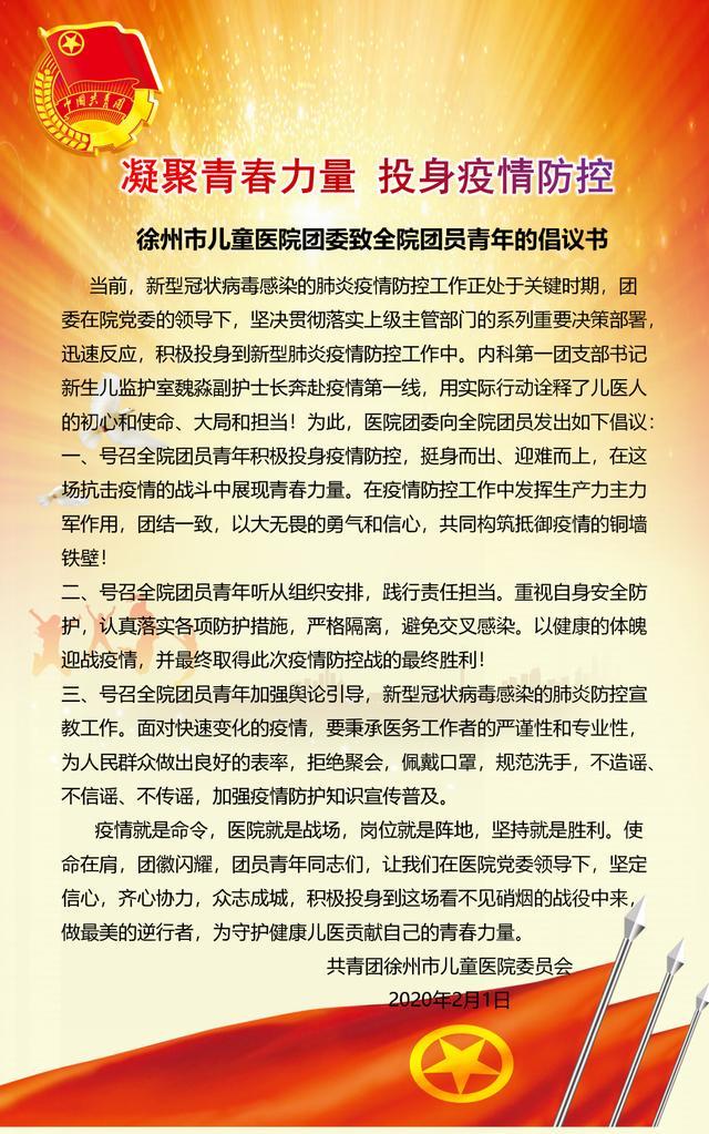 凝聚青春力量投身疫情防控—兒童醫(yī)院團(tuán)委致全院團(tuán)員青年倡議書