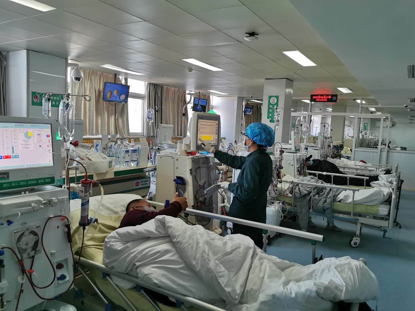 2月15日,中雪。疫情之下,街道上鮮有人跡,徐州市中心醫(yī)院血液凈化中心卻一片繁忙。67臺(tái)透析機(jī)正在“馬力全開”,全力保障血透患者的生命線。
