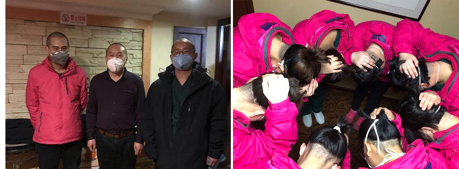 來到武漢后,我們簡單收拾妥當后,就立即投入緊張的培訓學習,反復練習穿脫隔離衣。為了減少感染風險,我們男同志都剃了光頭,女同志都剪了“武漢頭”,我們笑稱這是“英雄頭”,這或許是護士姐妹人生中唯一的一次“光頭”體驗,此刻形象對于我們來說并不重要,唯有防護和守護生命更重要。大家互相打氣,互相鼓勵,認真練習,互相監(jiān)督,爭取早點考核通過,趕緊上戰(zhàn)場。