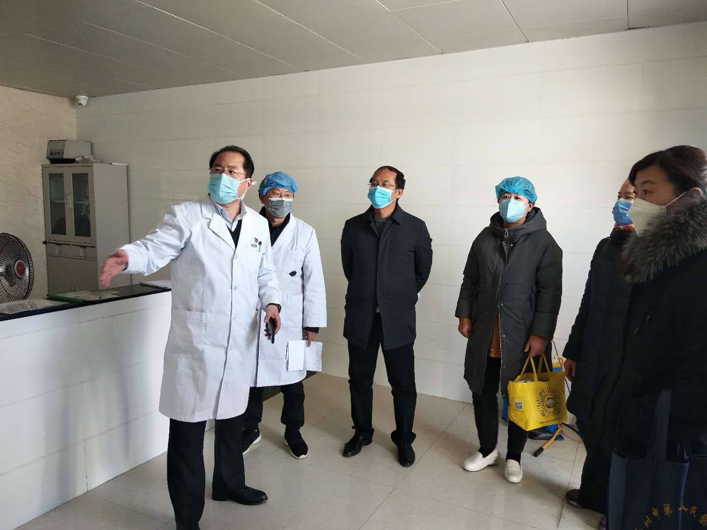 2月8日上午,在接到大彭分院的電話后,醫(yī)療集團質(zhì)控辦張慶國主任、院感尹慧貞處長、護理部閆敏及康穎護士長,立刻前往大彭鎮(zhèn)分院,針對防控工作進行指導。短短兩日,大彭發(fā)熱門診完成局部改造。