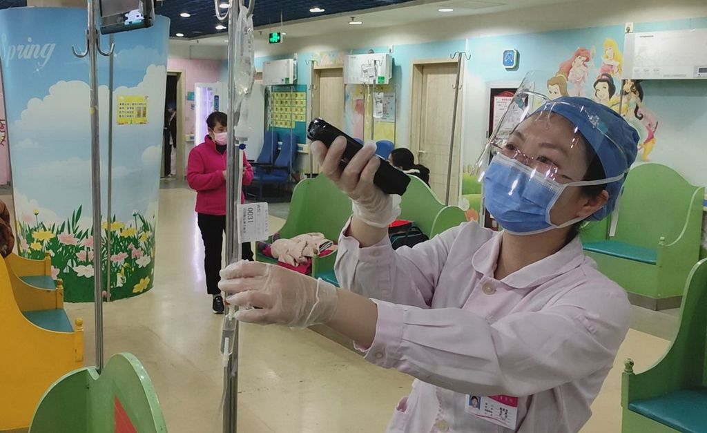 “我們將原先能容納400人的座椅撤掉了一半,就為了加大等候區(qū)座椅的間隔,現(xiàn)在座椅間的距離基本在2米左右。”輸液室護(hù)士長(zhǎng)祖靜告訴記者,近段時(shí)間,輸液室每天的人流量在100人次左右,他們通過提前引導(dǎo),輸液患兒錯(cuò)時(shí)來院,同一時(shí)間段內(nèi),輸液家庭不會(huì)超過15組。并且,針對(duì)普通發(fā)熱患兒,他們?cè)O(shè)有專門的輸液區(qū),可保證與不發(fā)熱患兒隔離開來。