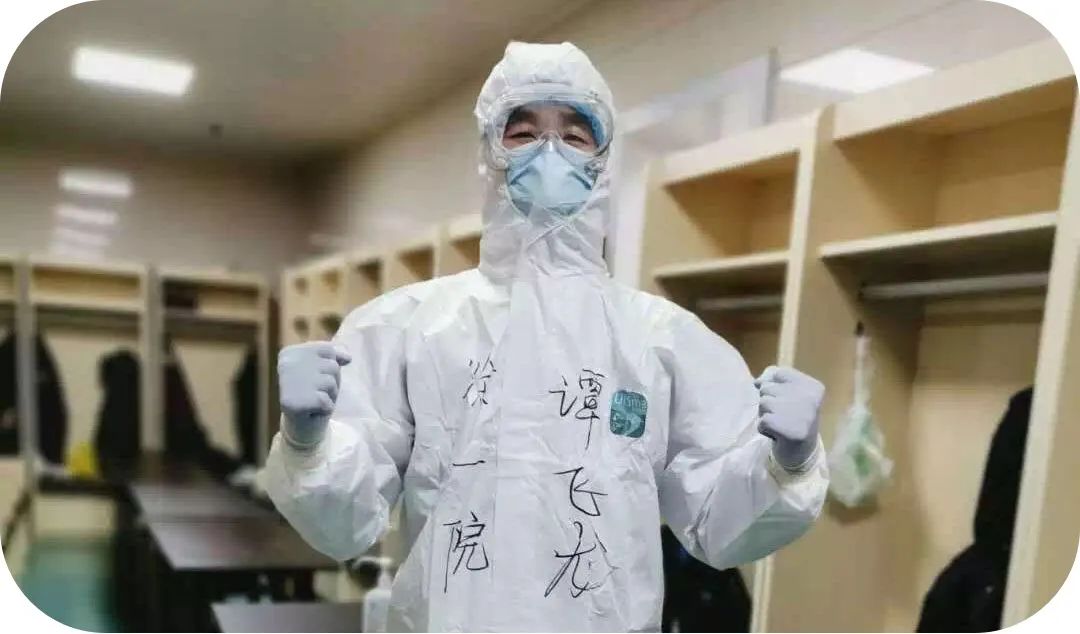 和患者交流也是譚飛龍每天的工作。一天,一位大爺主動(dòng)找譚飛龍傾訴:“小伙子,你們辛苦了,我一定好好配合你們,我想家……”話未說完,已是泣不成聲。這是一個(gè)受到新冠病毒重創(chuàng)的七口之家,原本幸福的家庭里,兩人因感染已離世,剩下五口人也都因感染被分別隔離。而在武漢,像大爺這種情況的家庭并不在少數(shù)。譚飛龍的心像被狠狠抓住了一樣,伴著疼痛的窒息感,他多么希望自己能夠立刻化身為天使,拯救患者與疫情的水火之中啊!他再次堅(jiān)定了信念:一定盡自己最大的努力,讓患者早日平安回家!他握住大爺?shù)氖,?jiān)定地說:“病毒無情、人有情,天氣雖冷,人心是熱乎的,讓我們團(tuán)結(jié)起來,共同抗戰(zhàn),一切都會(huì)好起來!”