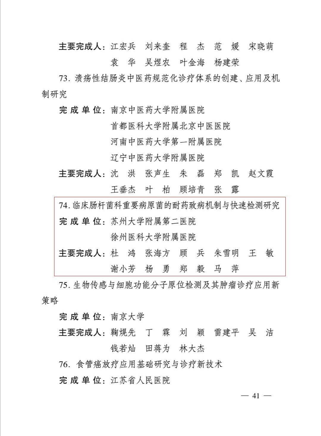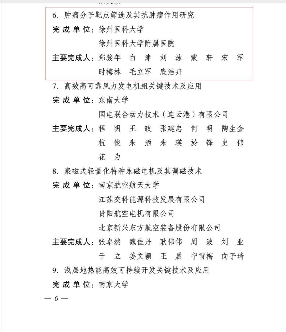 日前,江蘇省人民政府發(fā)布《省政府關(guān)于2019年度江蘇省科學(xué)技術(shù)獎勵的決定》,徐州醫(yī)科大學(xué)附屬醫(yī)院鄭駿年教授團(tuán)隊項目“腫瘤分子靶點篩選及其抗腫瘤作用研究”榮獲2019年度江蘇省科學(xué)技術(shù)獎一等獎,顧兵教授團(tuán)隊參與的項目“臨床腸桿菌科重要病原菌的耐藥致病機(jī)制與快速檢測研究”榮獲2019年度江蘇省科學(xué)技術(shù)獎二等獎,徐醫(yī)附院為該研究項目的第二單位。