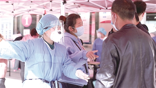 徐州市中醫(yī)院門(mén)診部主任吳曉靜介紹說(shuō),疫情期間,醫(yī)院分布在各個(gè)樓層的導(dǎo)醫(yī),不但要認(rèn)真完成分診導(dǎo)診、咨詢(xún)等工作,還需協(xié)助完成二級(jí)預(yù)檢測(cè)溫等防疫工作,包括調(diào)查流行病學(xué)史,協(xié)助患者進(jìn)入診室前做好手衛(wèi)生消毒,管理好候診區(qū)秩序,減少陪人入內(nèi),從而確保落實(shí)“一人一診一室”原則,防止交叉感染。