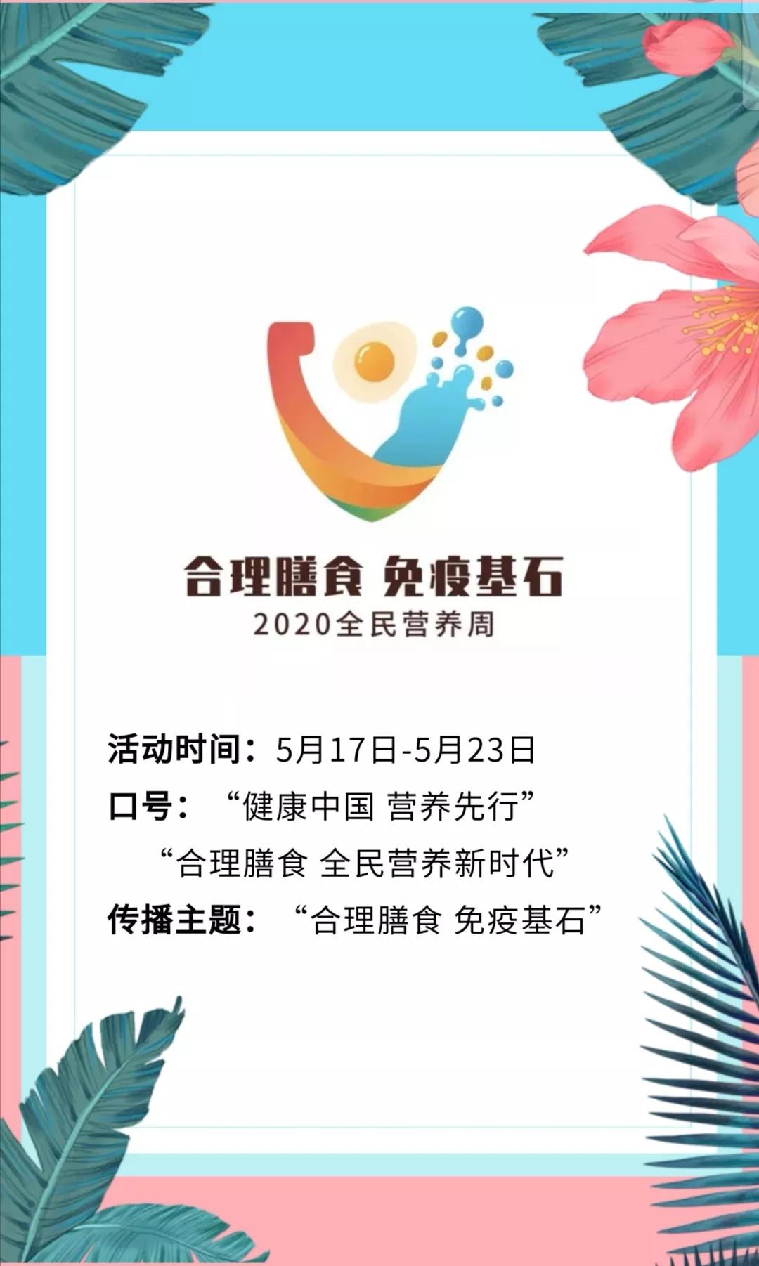 健康中國(guó),營(yíng)養(yǎng)先行。為了提高全民營(yíng)養(yǎng)意識(shí)、提倡健康生活方式、樹立科學(xué)飲食理念,中國(guó)營(yíng)養(yǎng)協(xié)會(huì)將每年5月的第三周定為“全民營(yíng)養(yǎng)周”,到2020年為止已成功舉辦五屆。今年?duì)I養(yǎng)周的主題是“合理膳食,免疫基石”,旨在普及合理膳食對(duì)增強(qiáng)人體免疫力的基石作用。