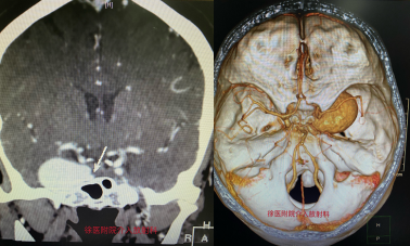 患者王阿姨因右眼腫脹3月余至當(dāng)?shù)蒯t(yī)院就診,檢查發(fā)現(xiàn)顱內(nèi)血管占位,考慮巨大動脈瘤可能性大。轉(zhuǎn)至徐醫(yī)附院后,介入科徐浩主任、崔艷峰主任立刻組織醫(yī)療團(tuán)隊對患者進(jìn)行頭頸部CTA及腦血管造影檢查,檢查結(jié)果令人吃驚。這是一例較罕見的巨大頸內(nèi)動脈海綿竇段動脈瘤,瘤體大小約34mm*24mm,治療過程中一旦破裂出血,死亡率極高。