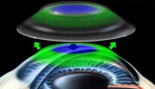 角膜塑形鏡是采用一種特殊逆幾何形態(tài)設(shè)計(jì)的透氣性硬質(zhì)角膜接觸鏡 ,在睡覺時(shí)戴在角膜前部,逐步使角膜彎曲度變平、眼軸縮短,從而有效地阻止了近視的發(fā)展。研究顯示:角膜塑形鏡可有效延緩兒童眼軸增長,近視控制效果約為41.7%。