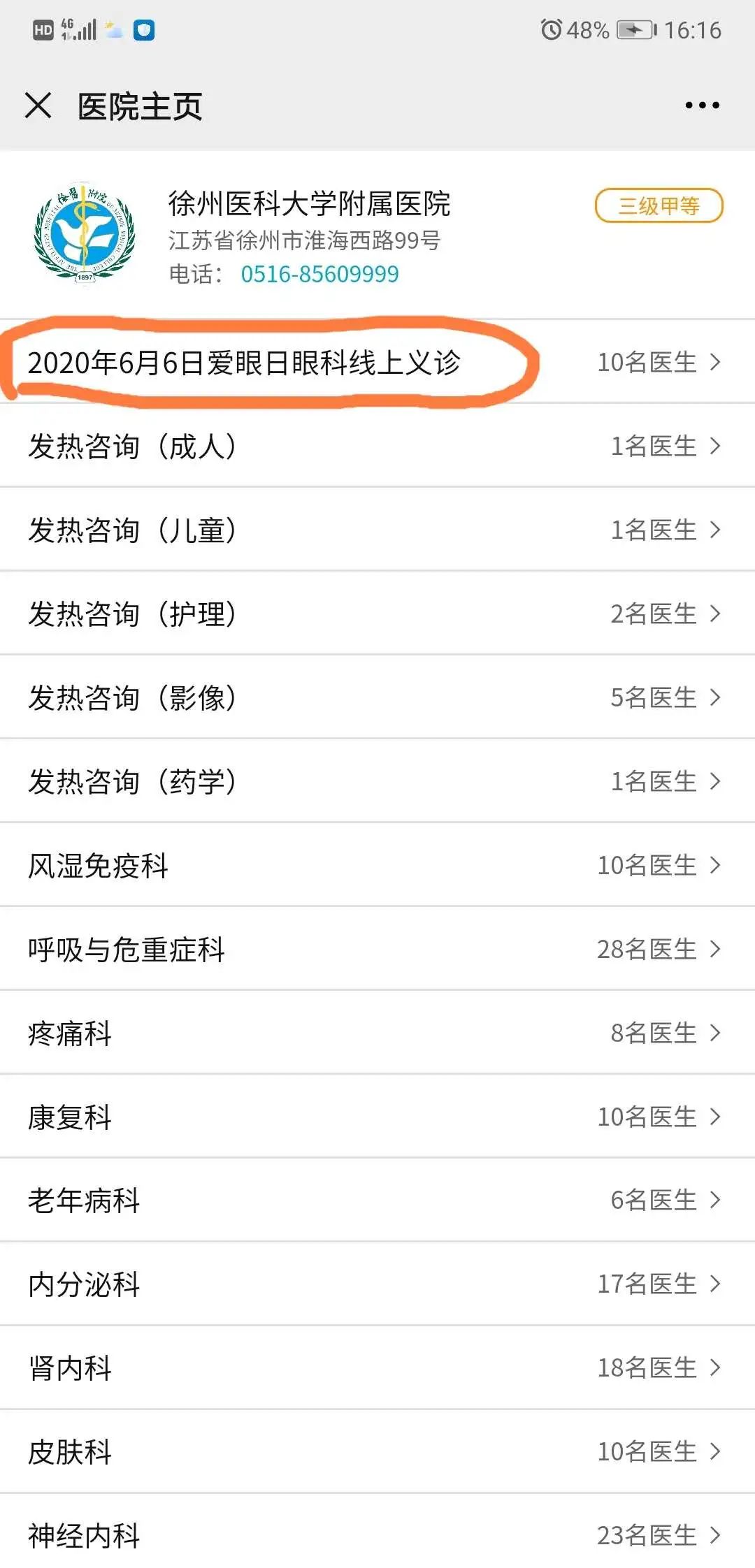 徐州醫(yī)科大學(xué)附屬醫(yī)院在愛眼日當(dāng)日8:30-10:30開展“線上義診”,歡迎廣大市民上線咨詢。