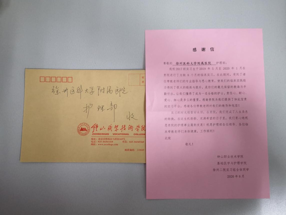 近日,鐘山職業(yè)技術學院寄來了一封熱情洋溢的《感謝信》,對徐州醫(yī)科大學附屬醫(yī)院護理團隊致以謝意。字里行間凝聚著鐘山職業(yè)技術學院及學生們對徐醫(yī)附院醫(yī)療環(huán)境、醫(yī)護人員醫(yī)療技能、人文素養(yǎng)、服務和教學水平等多個方面的高度肯定,表達了對徐醫(yī)附院護理帶教團隊的真摯關愛和衷心感謝。