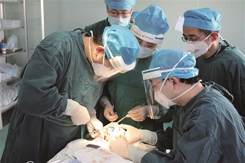 市口腔醫(yī)院醫(yī)生在施行手術(shù)。